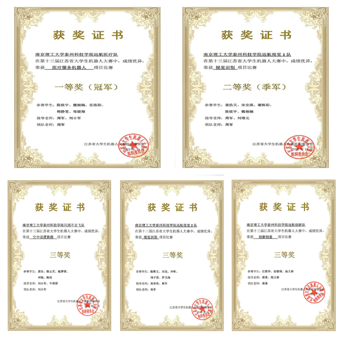 在送药巡诊机器人项目中,由陈炫宇领衔的“医疗服务机器人”小组一骑绝尘,机器人完成两轮全部动作仅用时49秒,一举斩获此项比赛的冠军;由谯浩天领衔的“视觉识别”小组,经过对算法的不断优化,最终获得机器人视觉识别项目的季军;由陈志芃、唐杰领衔的“无人机巡逻救援”小组、陈熙文领衔的“视觉识别”2号小组以及江煜华领衔的创新创意机器人组也分别获得了各自项目的三等奖。