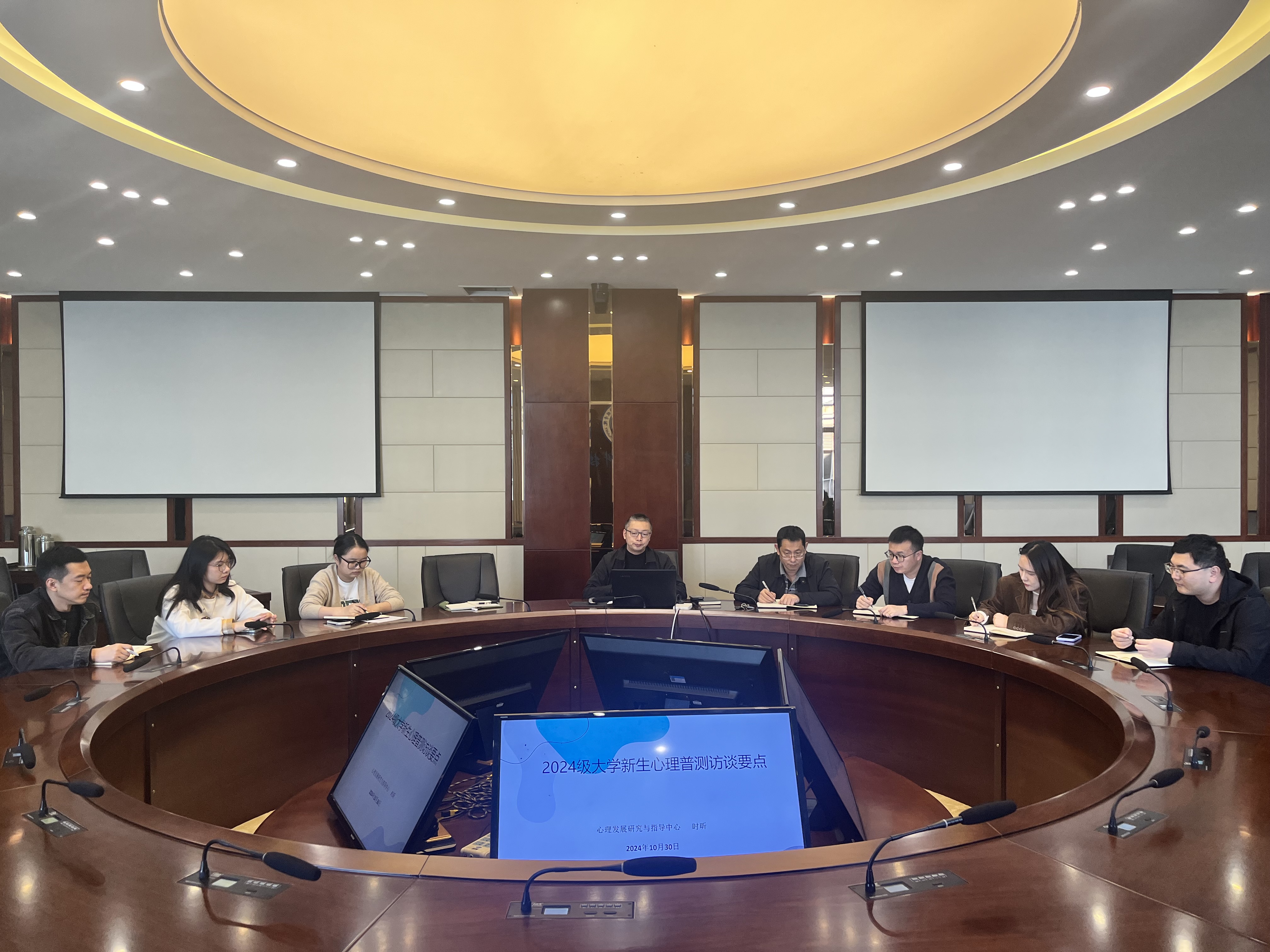 1030日下午,2024级新生心理普测结果反馈暨访谈培训会在明德楼会议室(二)召开。全体大一新生辅导员和心理中心全体工作人员参加了会议,会议由心理中心主任助理时昕主持。