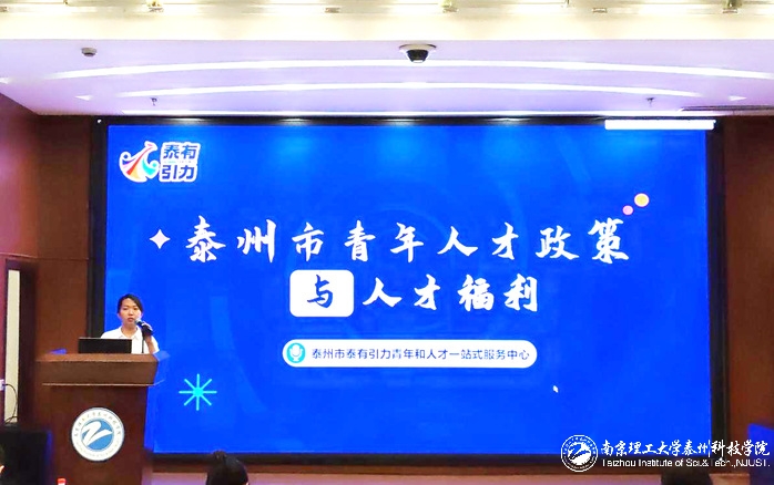 引力中心田盼秋老师则向同学们详细介绍了泰州市青年人才政策,包括留泰补贴、创业扶持资金等,鼓励高校学生扎根海陵,实现就业、创业梦想。