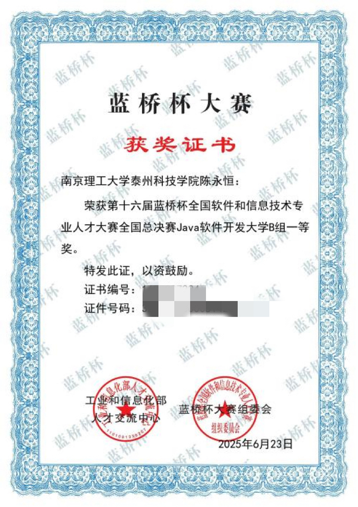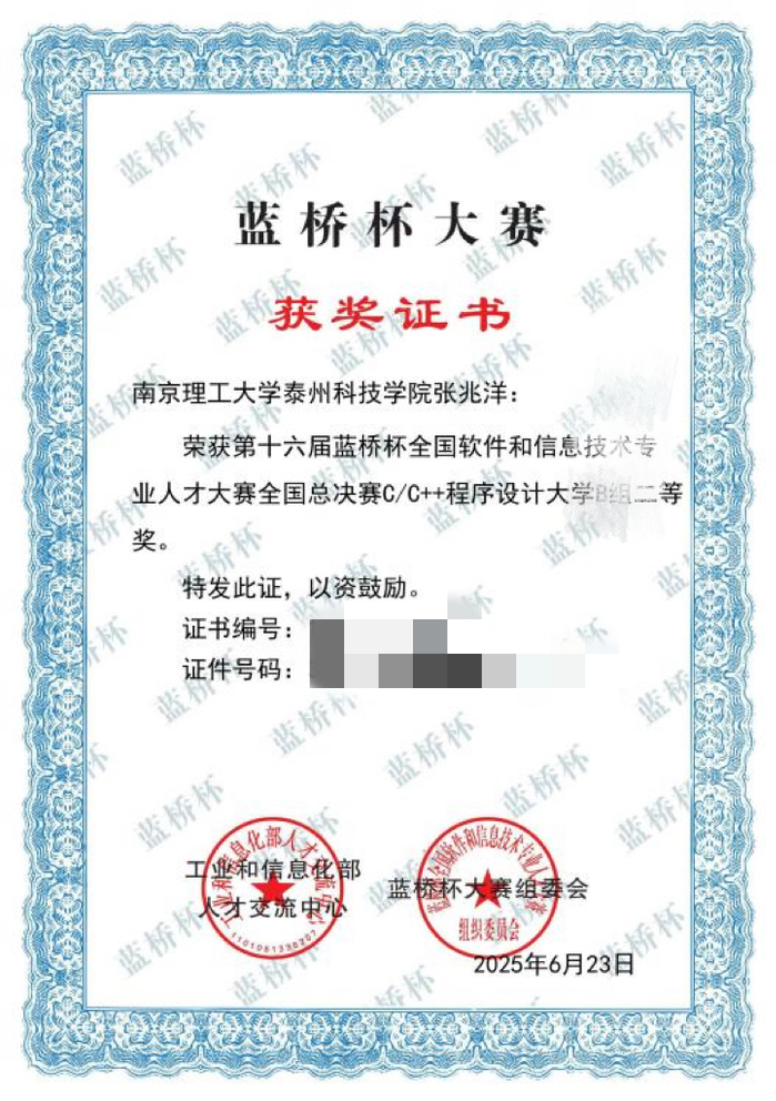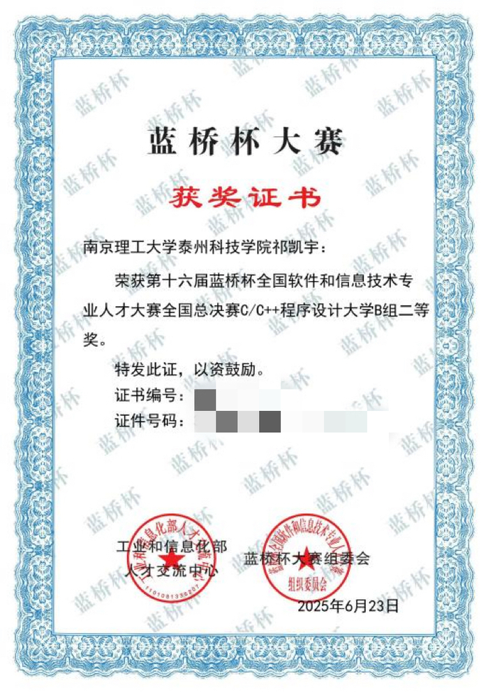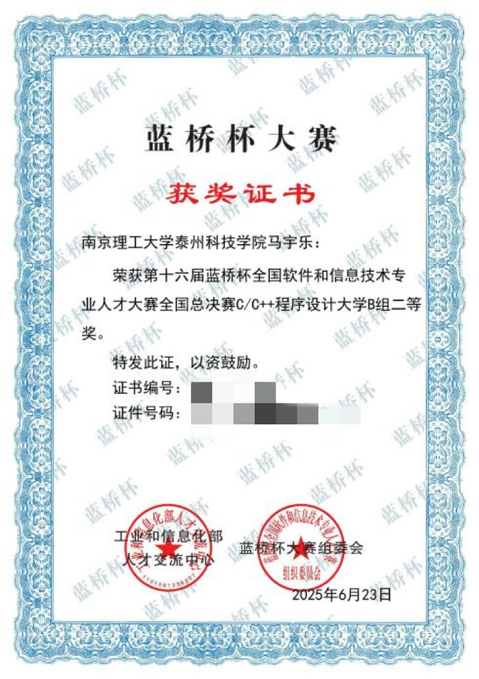 近日,由工业和信息化部人才交流中心主办的第十六届蓝桥杯全国软件和信息技术专业人才大赛(以下简称“蓝桥杯”大赛)圆满落下帷幕。我校计算机科学与工程学院(以下简称计算机学院)李丛、高广银、王旭、张晴四位教师组成的指导团队指导学生在软件类比赛中斩获79个奖项,其中省赛一等奖13人(进入全国总决赛),二等奖24人,三等奖29人,全国总决赛一等奖1人,二等奖4人,三等奖4人,优秀奖4人,获奖人数及质量在同类高校中继续保持领先。部分获奖证书如下: