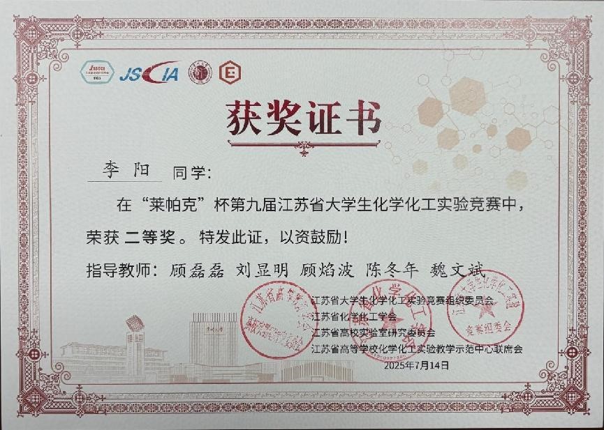 我校学子在江苏省大学生化学化工实验竞赛中再创佳绩