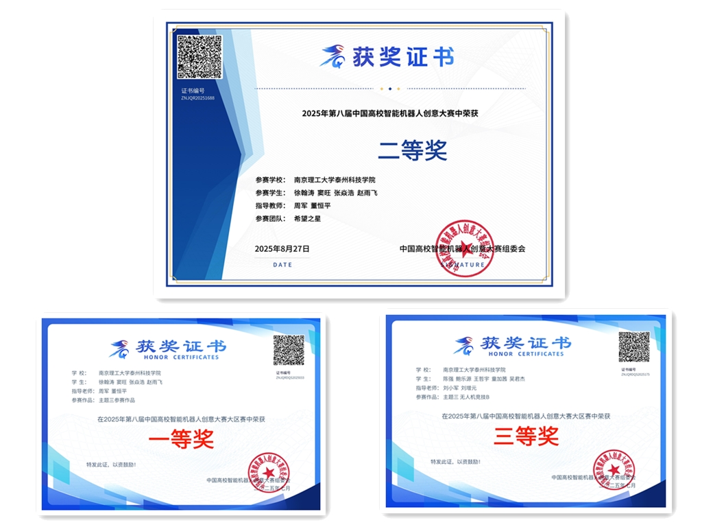 近日,2025年第八届中国高校智能机器人创意大赛落下帷幕,我校电子电气工程学院机器人竞赛团队在周军、刘小军、刘增元等教师的悉心指导下,获得了国家级二等奖1项,省级一等奖1项,三等奖1项。