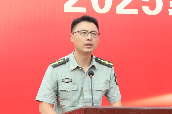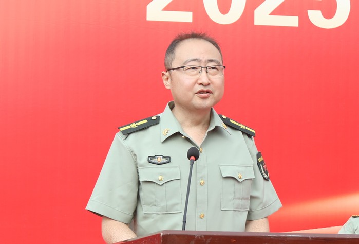 鞠晨鸣作军训总结讲话。他充分肯定了2025级学生军训成效,并向辛苦执教的全体承训教官、学生工作干部以及支持军训工作的各部门表示衷心的感谢与亲切的慰问。他指出,在纪念中国人民抗日战争暨世界反法西斯战争胜利80周年的特殊时间节点开展军训,更具有深刻的爱国主义教育意义。他勉励同学们将军训中培养的顽强意志、优良作风和集体精神延续到今后的学习生活中,勤奋求知、锤炼本领,努力成长为堪当民族复兴大任的时代新人。