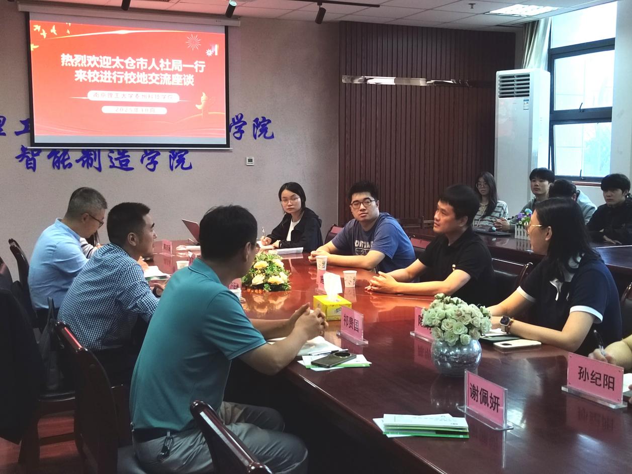 活动伊始,双方举行了校地合作交流座谈会。座谈会由创就办副主任户廷勇主持,他对太仓高新区人社局就业科科长施昊一行的到来表示热烈欢迎,并详细介绍了学校的办学特色与人才培养成果。随后,施昊就太仓高新区的发展现状、产业布局、引才优惠政策及特色的“双元制”教育模式进行了全面推介。在交流环节,双方就进一步拓展校地合作空间进行了探讨,学生们也针对个人发展所关切的问题与太仓代表进行了互动。智能制造学院党总支副书记、副院长鲁可乙,毕业班辅导员高亦涵、谢佩妍和毕业班学生代表50余人参加座谈会。