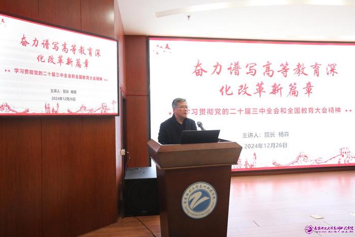 在智能制造学院,杨森以《奋力谱写高等教育深化改革新篇章》为题,理论联系实际,从“伟大征程 重大部署——学习贯彻党的二十届三中全会和全国教育大会精神”“筑牢基础 统筹战略——推进教育、科技、人才一体建设”“立德树人 开拓奋进——争做担当民族复兴大任的新时代青年”等方面,与青年学生面对面分享交流,引导学生感悟党的创新理论的实践伟力、增强对新时代新征程改革发展方略的理解和认同。