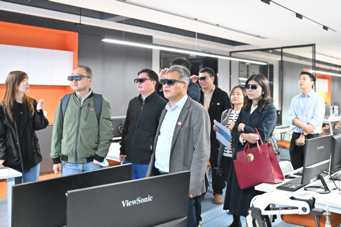 10月21日上午,调研组来到宁波大学科学技术学院,该院党委书记高森生带领调研组参观了妆写学院和公牛学院两个现代产业学院。