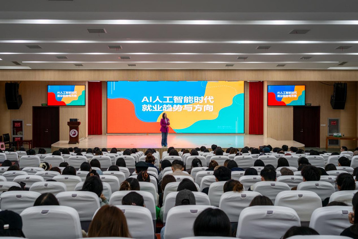 邵琦建议毕业生要理性看待择业,明确长期职业方向。她结合翔实的行业数据与发展案例,重点剖析了银发产业、宠物经济、大健康领域等一批基于社会结构变化而兴起的新兴行业,为毕业生们打开了全新的就业视野,揭示了未来职场的无限可能。
