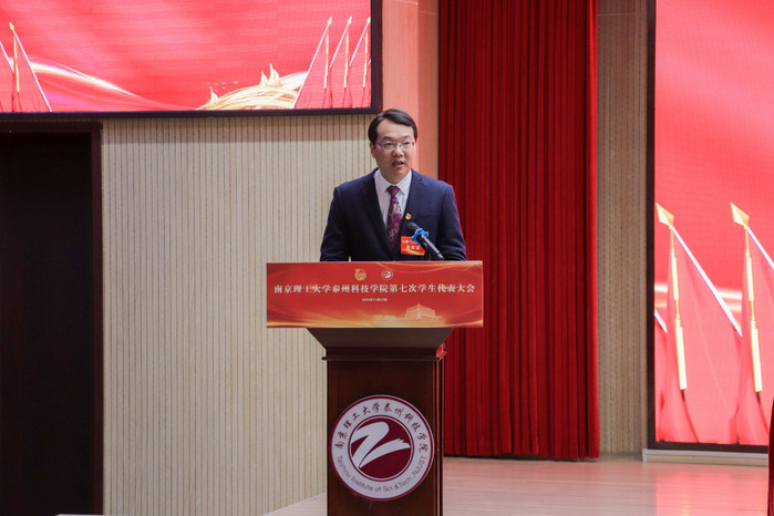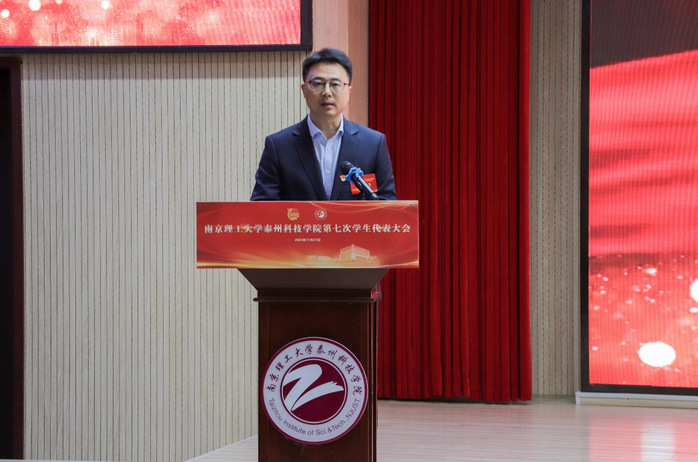 李坚代表泰州团市委为开幕式致辞。他充分肯定了我校学生会一年来所取得成绩,尤其是在泰州马拉松、溱湖志愿服务等活动中,“泰科青年”以蓬勃朝气和责任担当展现了青春风采,成为城市文明画卷中亮眼的底色。他围绕打造“青年和人才友好型”城市这一核心议题,向青年学生提出三点希望:一是坚定理想信念,做“志存高远”的追梦者;二是锤炼过硬本领,做“勤学善思”的实干者;三是牢记服务宗旨,做“同学信赖”的守护者。