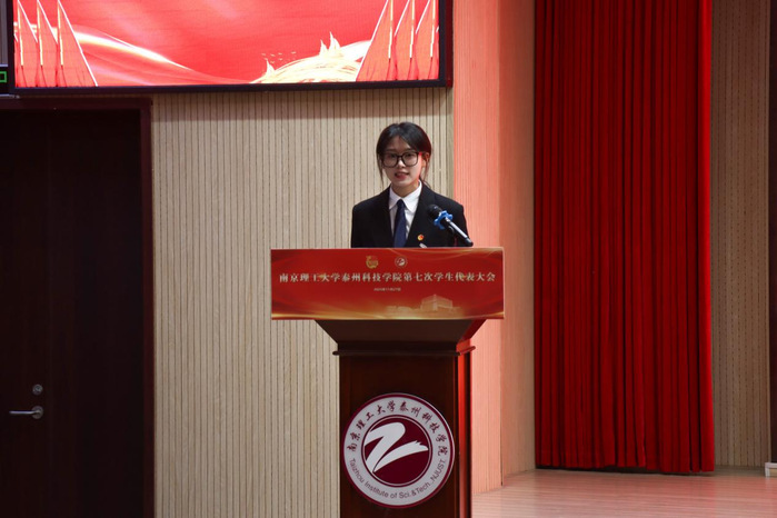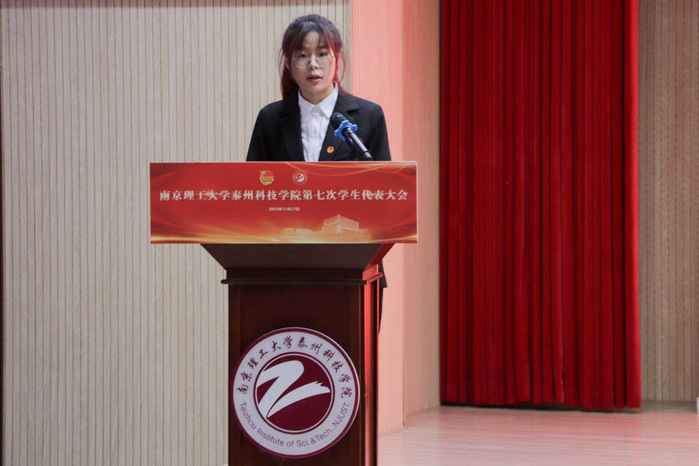 大会在庄严的国歌声中拉开帷幕。钟芸婷代表南京理工大学学生会向大会的召开表示热烈的祝贺,向师生致以问候与祝愿。她肯定了学生会过往工作成效,结合全国学联二十八大精神分享了三点体会,勉励青年学子牢记嘱托,为学校“十五五”新发展贡献青春力量。